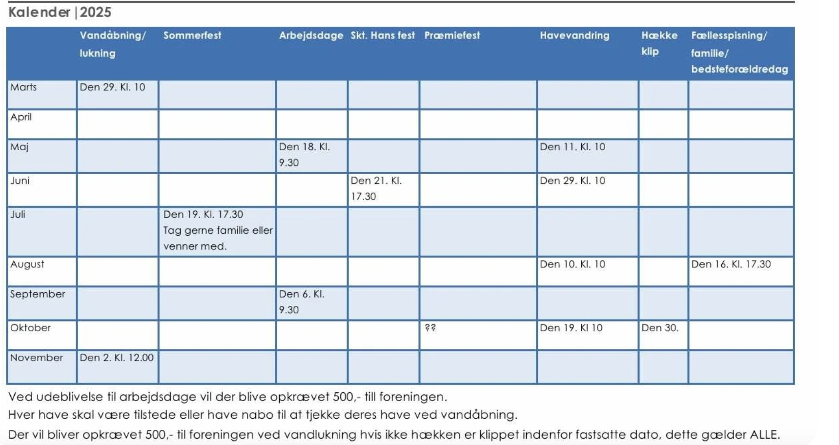Der afholdes flere fester/arrangementer i løbet af året.